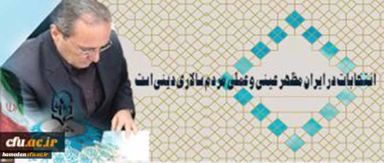 اسلام و ایران ما را به پای صندوق رای فرا میخواند . خانواده بزرگ دانشگاه فرهنگیان باید در لبیک گویی پیشتاز باشد. خادم شما: مهر محمدی سرپرست دانشگاه فرهنگیان