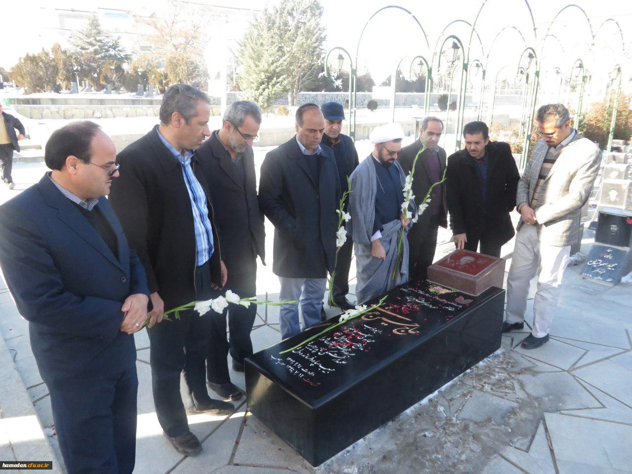 غبار روبی و عطرافشانی مزار شهید اکبر مقصودی و سایر شهدای گرانقدر در دهه مبارک فجر با حضور مسئولین دانشگاه فرهنگیان همدان