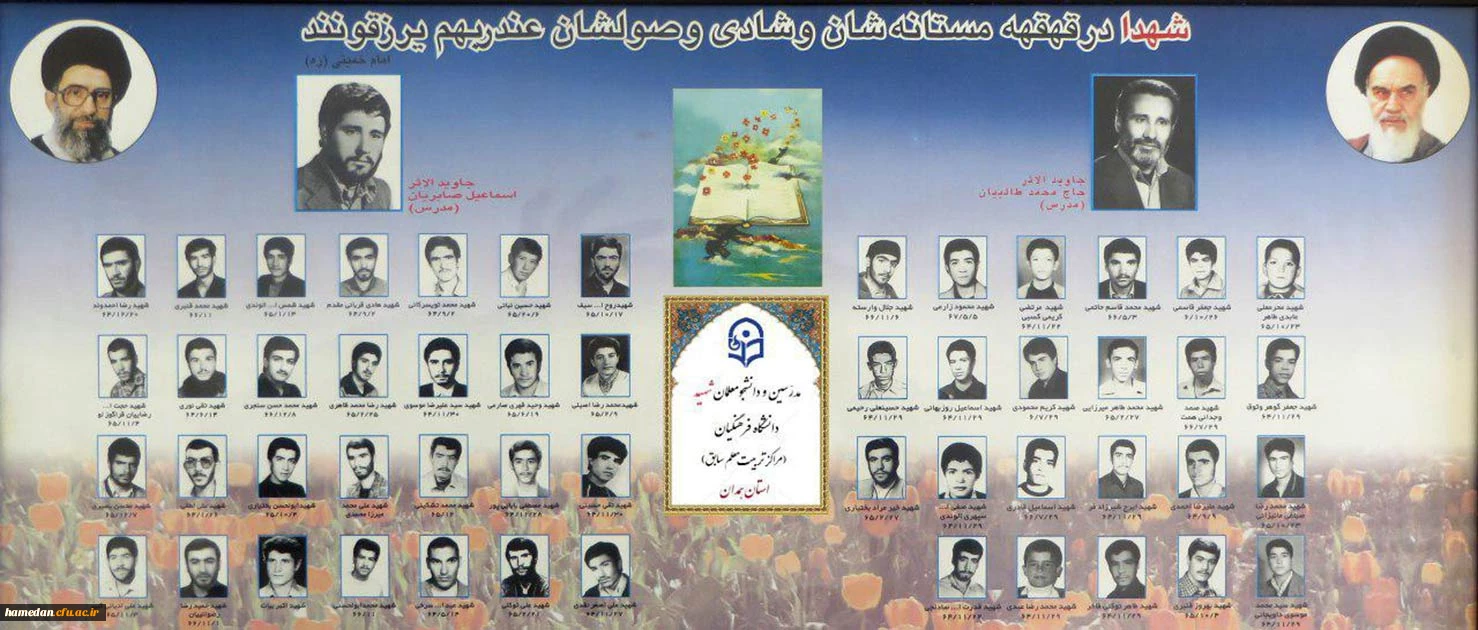 یاد و نام شهدای گرانقدر، استادان و دانشجو معلمان شهید دانشگاه فرهنگیان همدان، گرامی باد. شادی ارواح طیبه شهدا و امام شهدا (ره)، صلوات.