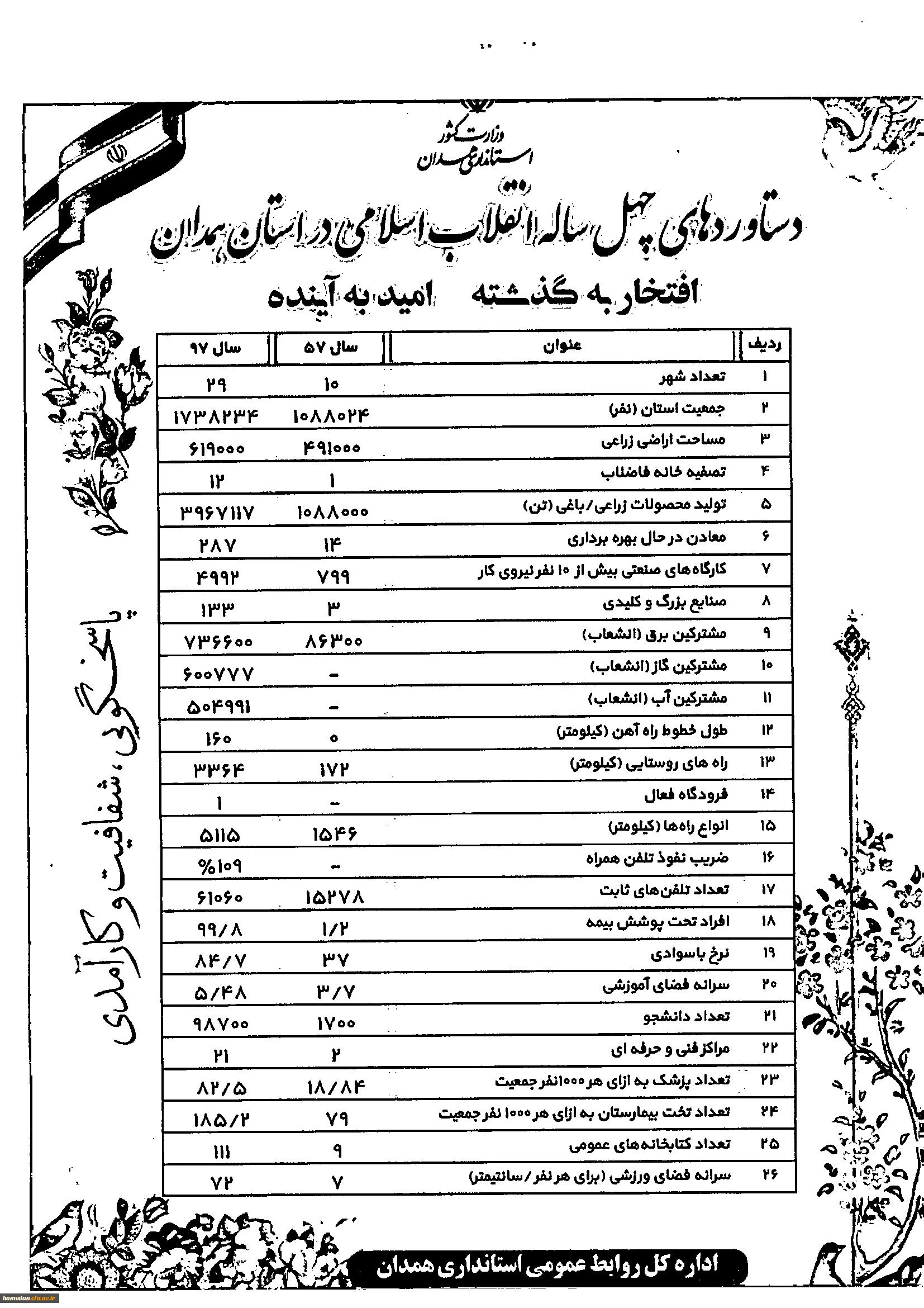 دستاوردهای چهل ساله انقلاب اسلامی در استان همدان