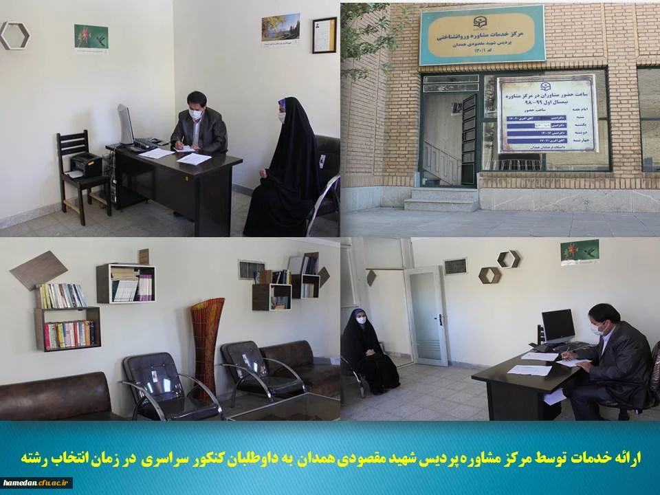 امتیاز دهید : مشاوره تحصیلی به داوطلبان کنکور سراسری در پردیس شهید مقصودی همدان 2 یکشنبه 6 مهر 1399 ساعت 8:34