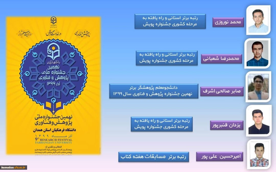 امتیاز دهید : پژوهشگران برتر مرحله استانی ( نهمین جشنواره ملی پژوهش و فناوری) 4 یکشنبه 30 آذر 1399 ساعت 13:34
