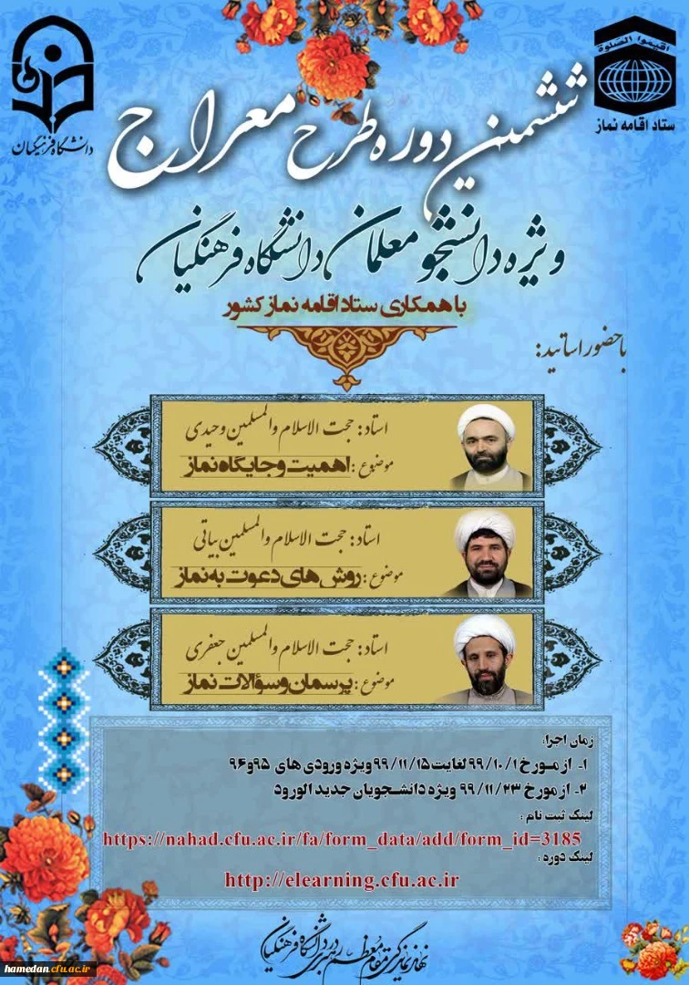امتیاز دهید : ششمین دوره طرح معراج ویژه دانشجو معلمان دانشگاه فرهنگیان 2 چهارشنبه 24 دی 1399 ساعت 12:12