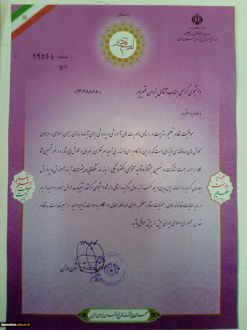 کسب رتبه های اول و سوم استانی در نهمین جشنواره تولید محتوای الکترونیکی آموزش و پرورش استان 2