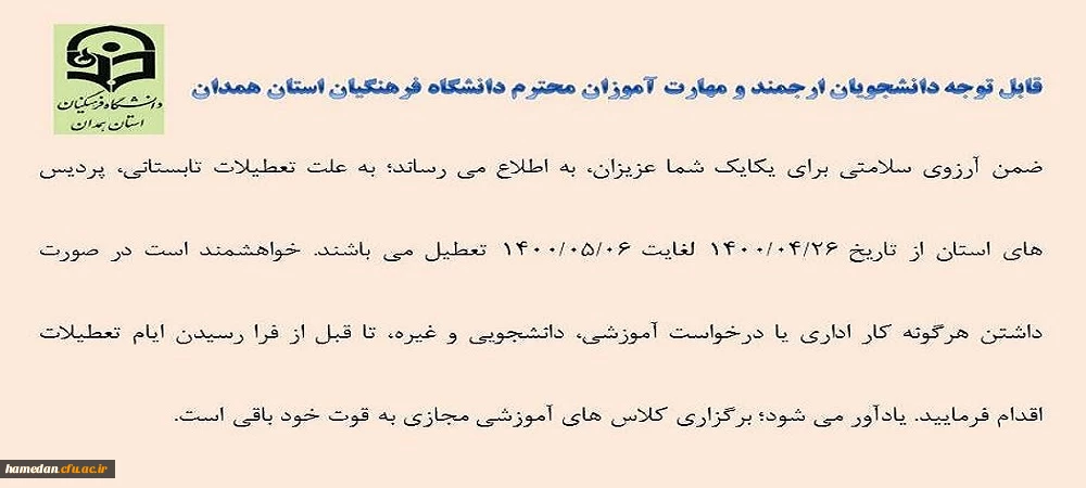 قابل توجه دانشجو معلمان و مهارت آموزان پردیس های استان 2
