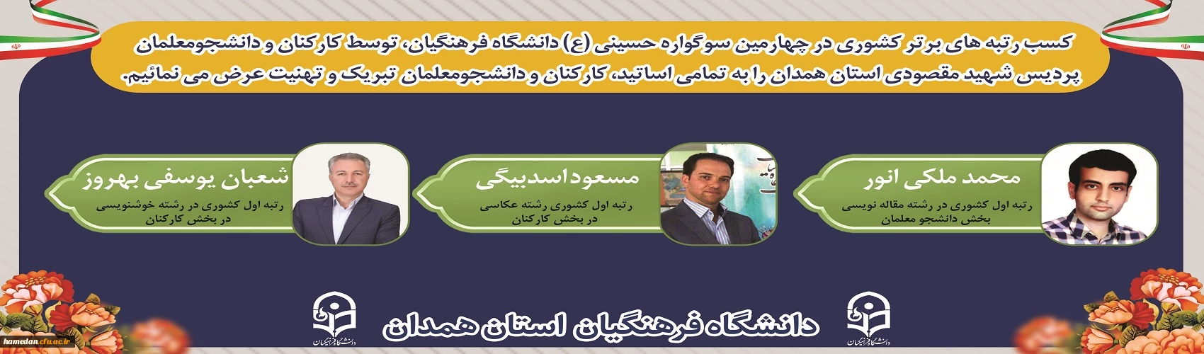امتیاز دهید : کسب عناوین برتر کشوری در جشنواره کشوری سفیران حسینی (ع) 2 یکشنبه 23 آبان 1400 ساعت 14:27
