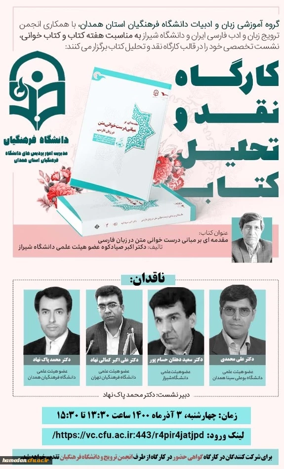 امتیاز دهید : کارگاه نقد و تحلیل کتاب «مقدمه ای بر درست خوانی متن در زبان فارسی» 2 شنبه 6 آذر 1400 ساعت 13:23