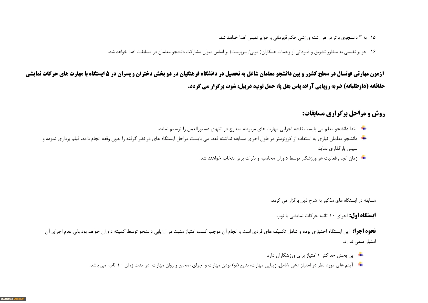 دستورالعمل های مربوط به برگزاری مسابقات رشته های مختلف در المپیاد ورزشی (مجازی) قهرمانی دانشجو معلمان 2