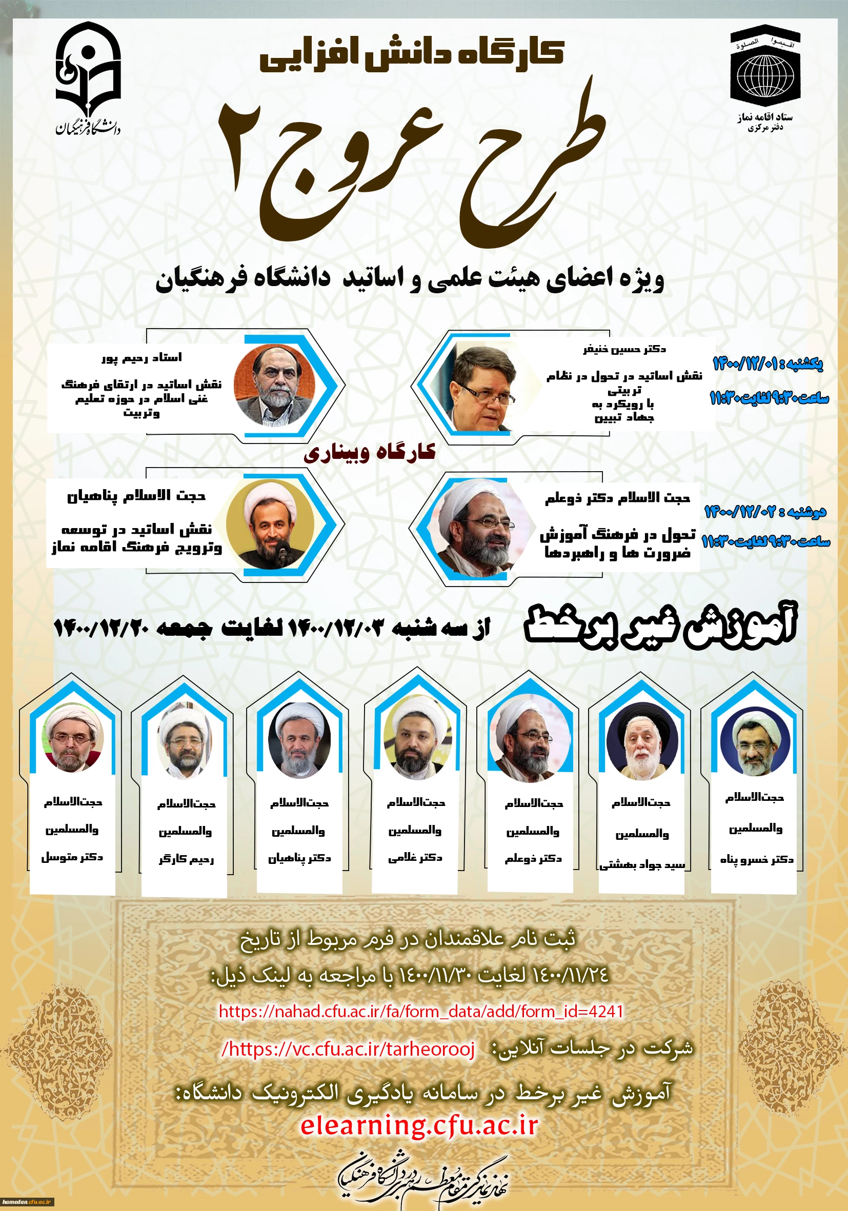 امتیاز دهید : کارگاه دانش افزایی طرح عروج 2 ویژه اعضای هیات علمی و اساتید دانشگاه فرهنگیان 2 دوشنبه 25 بهمن 1400 ساعت 8:40