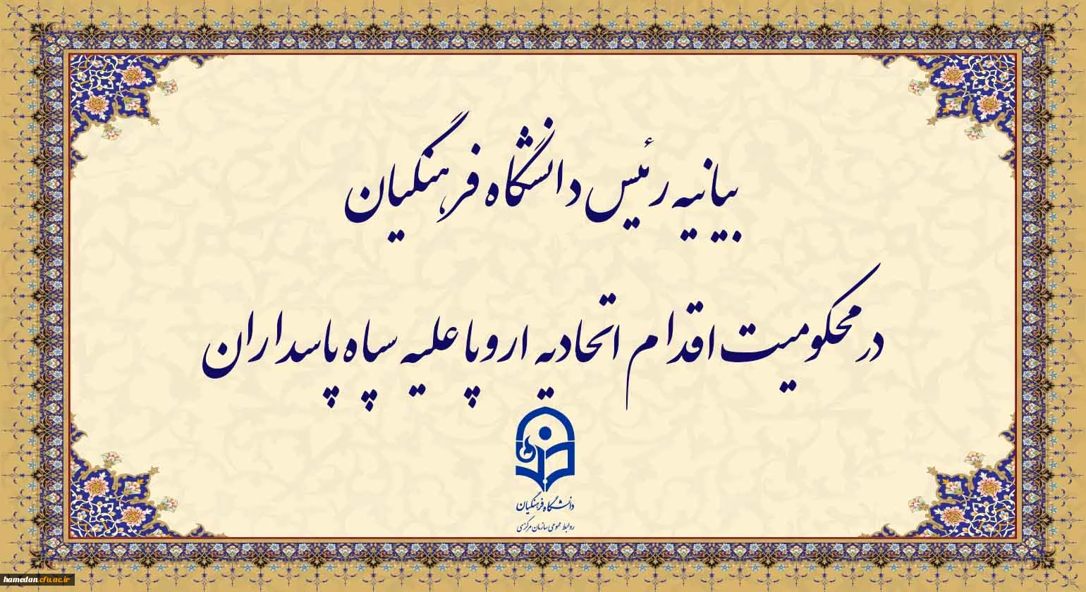 بیانیه رئیس دانشگاه فرهنگیان در محکومیت اقدام اتحادیه اروپا علیه سپاه پاسداران 2