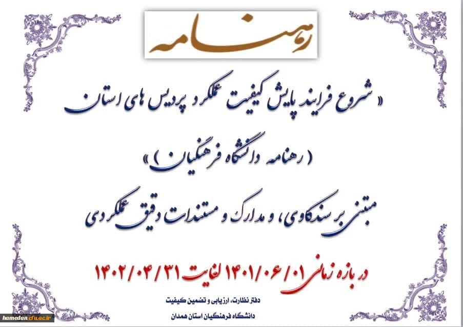 شیوه نامه اجرایی پایش عملکرد مدیریت امور پردیس های دانشگاه فرهنگیان استان همدان 2