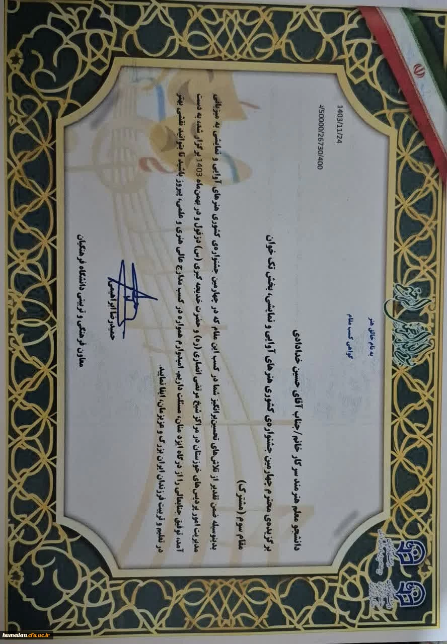 کسب رتبه های برتر در جشنواره کشوری سرود و هنرهای نمایشی دانشگاه فرهنگیان کشور 6